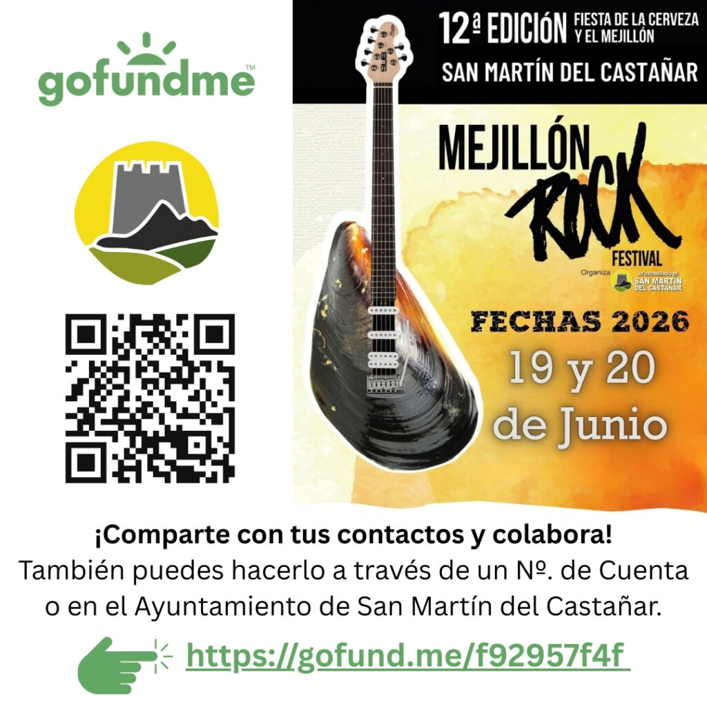 El festival Mejillón Rock regresa a San Martín del Castañar los días 19 y 20 de junio de 2026, celebrando su 12ª edición dentro de la ya consolidada Fiesta de la Cerveza y el Mejillón, y reafirmándose como uno de los eventos musicales más destacados de la Sierra de Francia. Este encuentro, que apuesta por la música en directo y el apoyo a bandas emergentes y proyectos independientes, impulsa además una campaña de colaboración y crowdfunding para garantizar su continuidad y crecimiento, invitando a vecinos y visitantes a formar parte activa del festival. Cada aportación contribuye a mantener viva la cultura musical en el entorno rural y a seguir llenando de energía y rock este enclave único, convirtiendo el Mejillón Rock en una cita imprescindible del calendario estival.